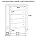 Address the furniture needs of your bedroom with this transitional 4-piece bedroom set that includes bed, nightstand, dresser, and mirror. Each piece is fashioned from durable solid wood for years of use and, except for the mirror, features stylish tapered legs. The bed comes with an imposing headboard and low-profile footboard, each upholstered in elegant leatherette padding, as is the top of the mirror. The drawers on the three case pieces are adorned with lustrous nickel hardware. This handsome bedroom set is the ideal way to express your style in your serene space.