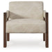 This accent chair is an ultra-contemporary addition to your seating area. Warm espresso-hued wood and neutral faux leather harmonize beautifully for a luxuriously welcoming vibe. Whether you're cozying up with coffee or settling in to stream your favorite show, relaxing has never been so comfortably chic.