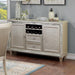 ADELINA Server, 54"W X 18"D X 36"H, 169.4lbs. Shimmering from its tasteful mirror tile accents, this dining set proposes glam to any home that welcomes it. Find luxury in this server, which provides easy access to your wines and multiple full extension drawers. Light bounces beautifully off the subtle warmth of the finish, topping off this chic ensemble.