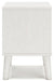 Dare to take minimalism to the max. This nightstand has an air of sleek simplicity thanks to its white painted finish with subtle replicated wood grain. Magnificently mod splay legs are a compelling complement to the streamlined design. And with two different faux leather drawer pulls that allow you to customize the nightstand to suit your space, there's no doubt about it: This contemporary piece is sure to become a classic.