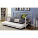 Click to expand Tap to zoom Claremont Trundle by FOA East Save $260.00 Original price $439.00 Current price $179.00 | / We offer free pickup at any of our store locations. For Delivery, call us about our shipping rates for more info! Financing Options Available! CALL NOW 718-981-9222 1 2 3 4 5 6 7 8 9 10+ Quantity Quantity Add to cart Have a question? Contact Online Support 24/7 The simple metal design of this trundle bed adds flair to the delightful daybed. Powder coating available in two finishes: dark bronze or vintage white.