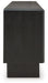 Function and style merge perfectly with this accent cabinet. Crafted of solid wood in a black finish, this piece makes a great case for fresh contemporary design. Doors with a carved pattern open to reveal shelving, while beveled edges add a distinctive touch. Whether you use it for storage or as a TV stand, your love of unique style will shine front and center.