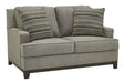 Whether your style is American classic, contemporary or an eclectic mix, this beautifully versatile loveseat is sure to look right at home. Distinctive elements include an exposed rail, designer accent pillows and decadent woven upholstery in a rich neutral shade inspired by tailored menswear.
