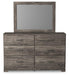 With its clean-lined look and modern attitude, this dresser and mirror is a fresh style awakening. A warm gray hue over replicated oak grain easily...