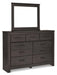 Priced to entice and styled to impress, this dresser and mirror set makes the most of a clean-lined, contemporary profile. With three drawer sizes scaled to meet your needs, the design merges cool form and practical function. Replicated oak grain effect gives the modern, gray finish warmth and character. Large linear pulls are a sleek touch.