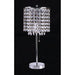 Perla Chrome Table Lamp, 15"L X 15"W X 28"H, 4.22lbs. This 19-inch tall table lamp features diamond-cut faux crystals and a stable, chrome base. Features: Traditional Style Metal Height: 19" Max Watt: 40w or 13w CFL Shade Size: 8"D X 8"H Diamond Cut Faux Crystal