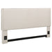 Inspire modern artistry in a contemporary bedroom space with a headboard that shines as a focal point. This updated headboard creates a mix of clean lines and tempting upgrades to transform a bedroom into a haven for relaxation. Versatile and timeless, flange details dress up the outer border, adding a dimensional effect. Textured sand finish fabric wraps over the headboard to deliver a light essence and a palette that accommodates a variety of options for matching case pieces, beds, and accessories. Constructed of pine wood.