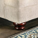 This is an oversized neutral-colored chair that is ideal for maximum comfort. It features the bouyancy of an overstuffed broad seat cushion (zippered and reversible) and an extra-plush large back pillow. The inclusion of matching accent pillows establishes a direct contrast for a traditional look. A subtle knit pattern provides a slight sense of texture to the soft beige fabric upholstery. Polished dark-stained wood bun feet ensure stability to a frame that is so thoroughly padded every inch is soft to the touch.