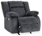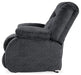 If highly contemporary looks and a heavenly feel sit well with you, rest your eyes on this power rocker recliner. Padded velvet upholstery has a plush high pile that's so soft to the touch. Jumbo contrast stitching adds fashion-forward flair, while radius cut arm frame incorporates cool, curvaceous interest. At your fingertips: one-touch power control with a zero-draw USB plug-in that’s not only convenient but also energy efficient. When it comes to high style at a down-to-earth price, this power recliner really brings it home.