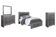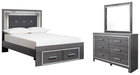 Reminiscent of Hollywood glamour of yesteryear, this bedroom set with queen/full panel headboard and dresser/mirror interprets luxury in a decidedly modern way. Headboard details include button-tufted upholstery, faceted faux crystals and LED lights enhanced with remote-controlled settings for color and brightness. Chrome-tone drawer pulls and accents are a chic complement to the dazzling gray finish.