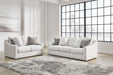 Clean lines and streamlined silhouettes define the architectural attitude of the Maitelynn seating package. Soft, textured upholstery adds a luxurious high-end touch to the classic design. Plush reversible cushions beckon you to sit down, get comfy and relax completely.