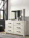 What a delightful take on rustic industrial style. Whether modern loft or modern farmhouse, this dresser and mirror set makes itself at home. The wispy whitewash palette enhances without covering the grain for that weathered look you crave. Elongated drawer pulls elevate the aesthetic.