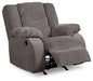 This rocker recliner puts the win in winning. Its waterfall back design and doubly plump pillow top arms team up with soft chenille fabric to go for the goal. Ample seating room makes the comfort possibilities endless. Sit back and relax. You won’t go wrong with this recliner.