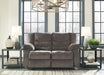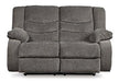 This reclining loveseat puts the win in winning. Its waterfall back design and doubly plump pillowtop arms team up with soft chenille fabric to go for the goal. Ample seating room makes the comfort possibilities endless. Sit back and relax. You won’t go wrong with this reclining loveseat.