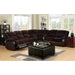 Enjoy the comfort and casual style of this corner sectional with built-in recliners. Plush seats and arms offer comfort, while the mix of two materials make it a stunning living room piece. Made of champion fabric and leatherette.